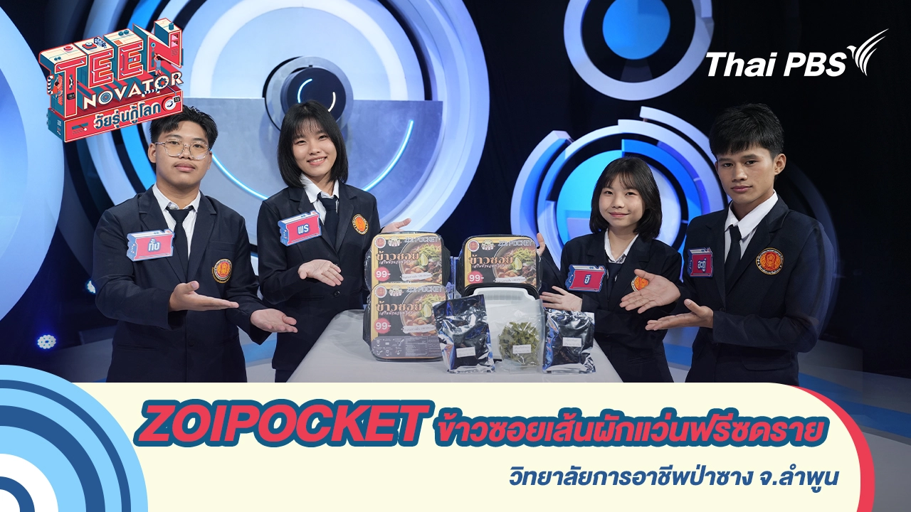 “ZOIPOCKET” จะมีฟังก์ชันการใช้งานอย่างไร และน้อง ๆ จะคว้า เหรียญทอง จากทางรายการไปได้สำเร็จหรือไม่ ติดตามชมและเชียร์พวกเขาใน รายการ Teennovator วัยรุ่นกู้โลก ตอน นวัตกรรม : ZOIPOCKET ข้าวซอยเส้นผักแว่นฟรีซดราย อาทิตย์ที่ 26 เมษายน เวลา 16.05 น. ทางไทยพีบีเอส ชมย้อนหลังได้ทาง www.thaipbs.or.th/Teennovator